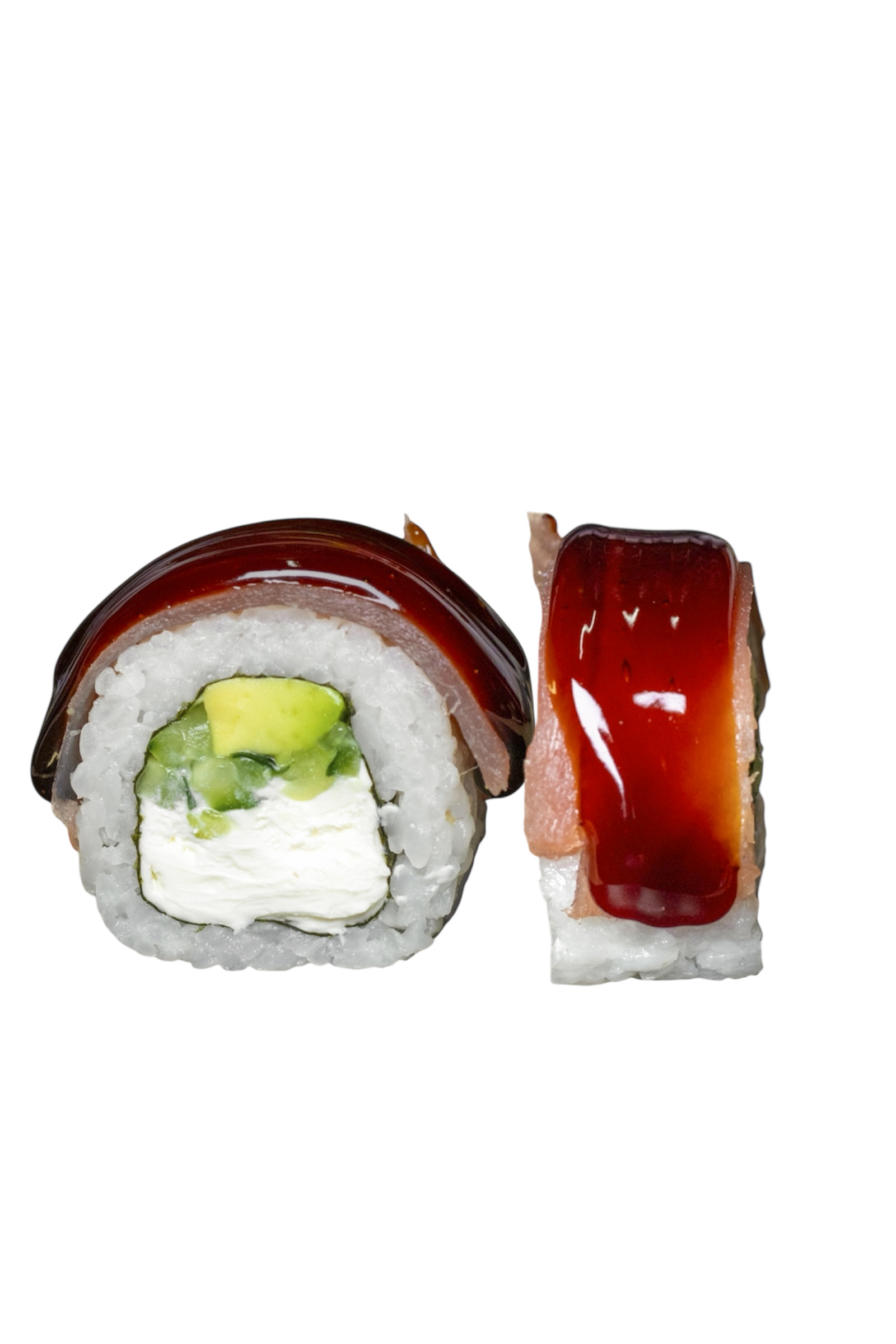 Рис, норі, сир філадельфія, огірок, авокадо, тобіко, тунець