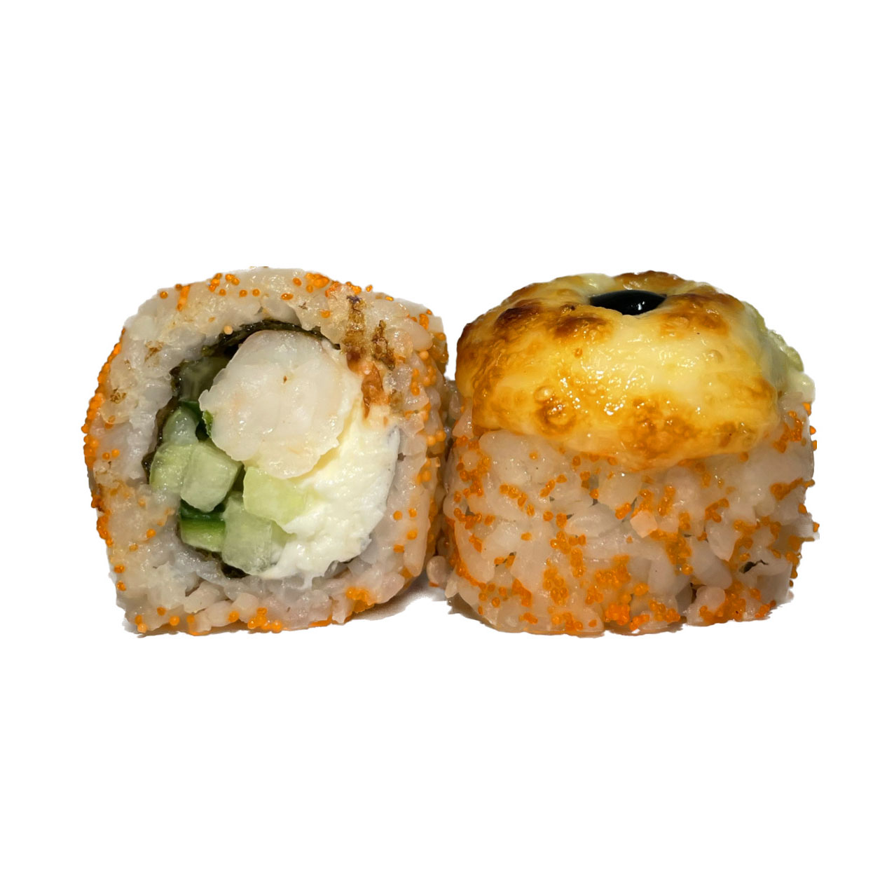 Рис, норі, креветка, сир філадельфія, огірок, тобіко, пармезан, фірмовий соус