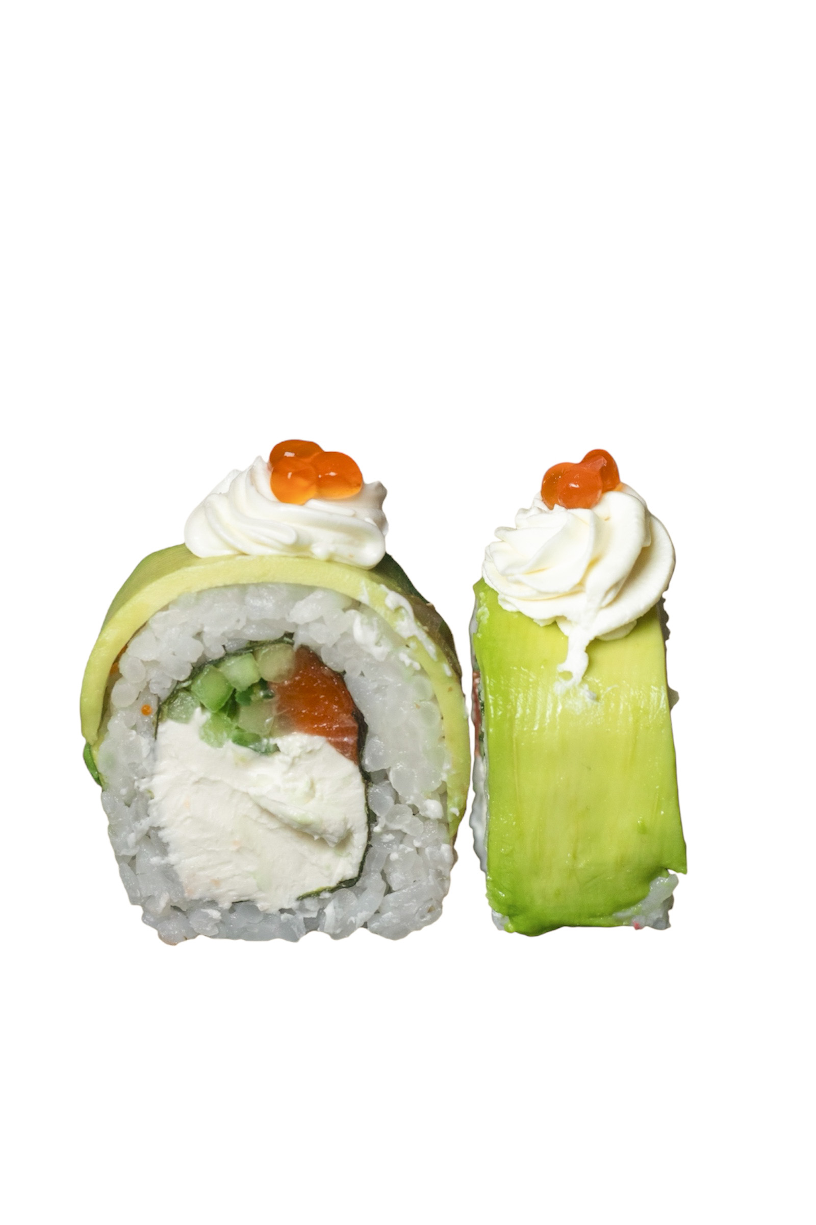 Рис, норі, сир філадельфія, огірок, авокадо, лосось, ікра лососева