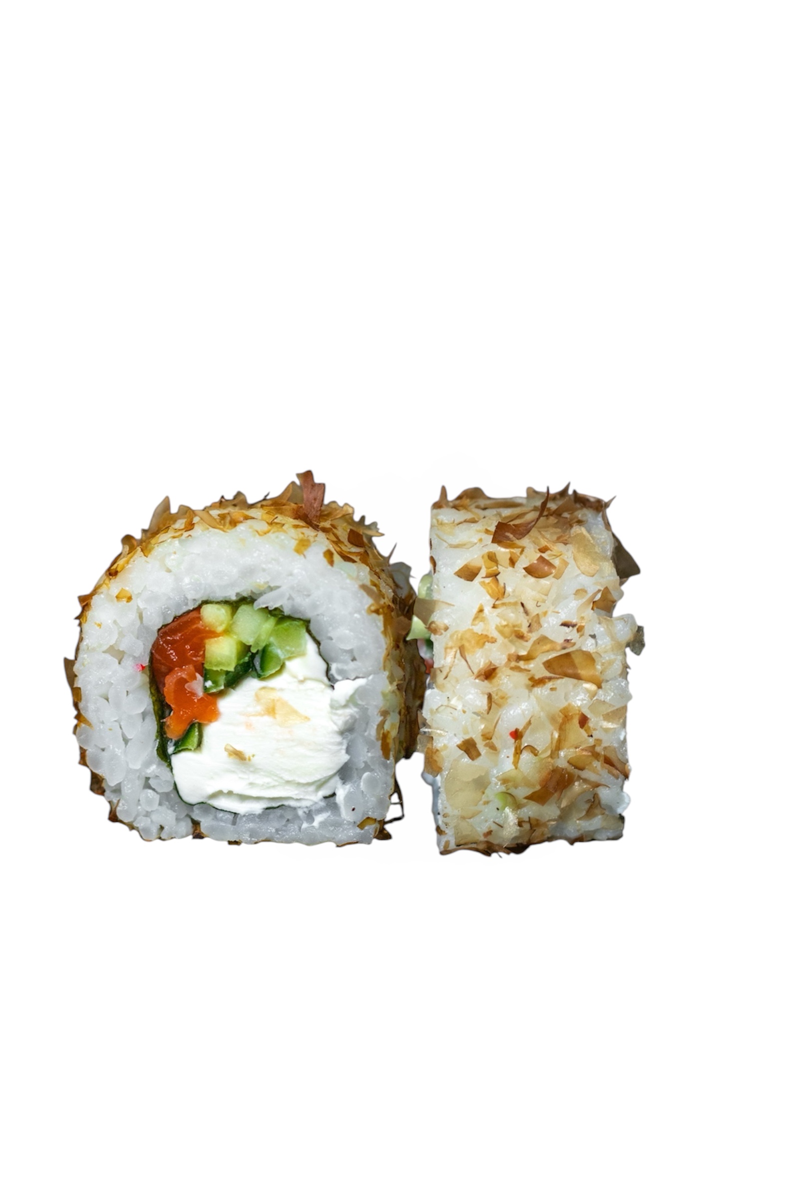 Рис, норі, сир філадельфія, огірок, лосось, стружка тунця