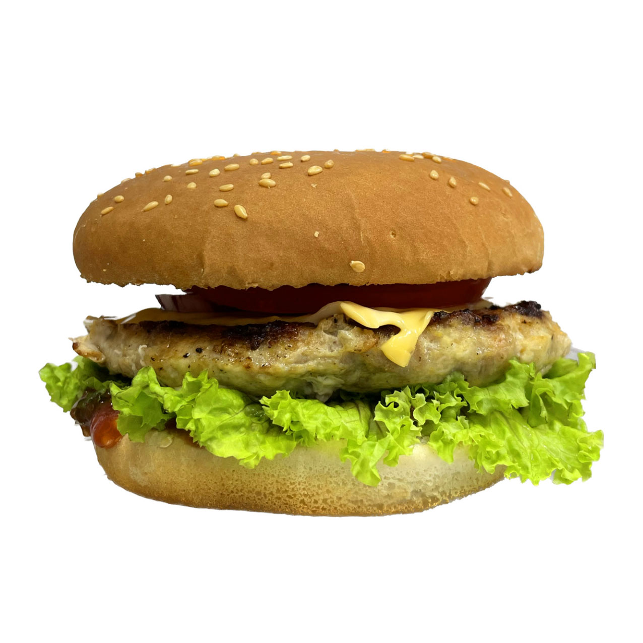 помідори, котлета свинно-говяжа, соус фірмовий, салатний мікс, огірок, цибуля кримськка, сир тостерний