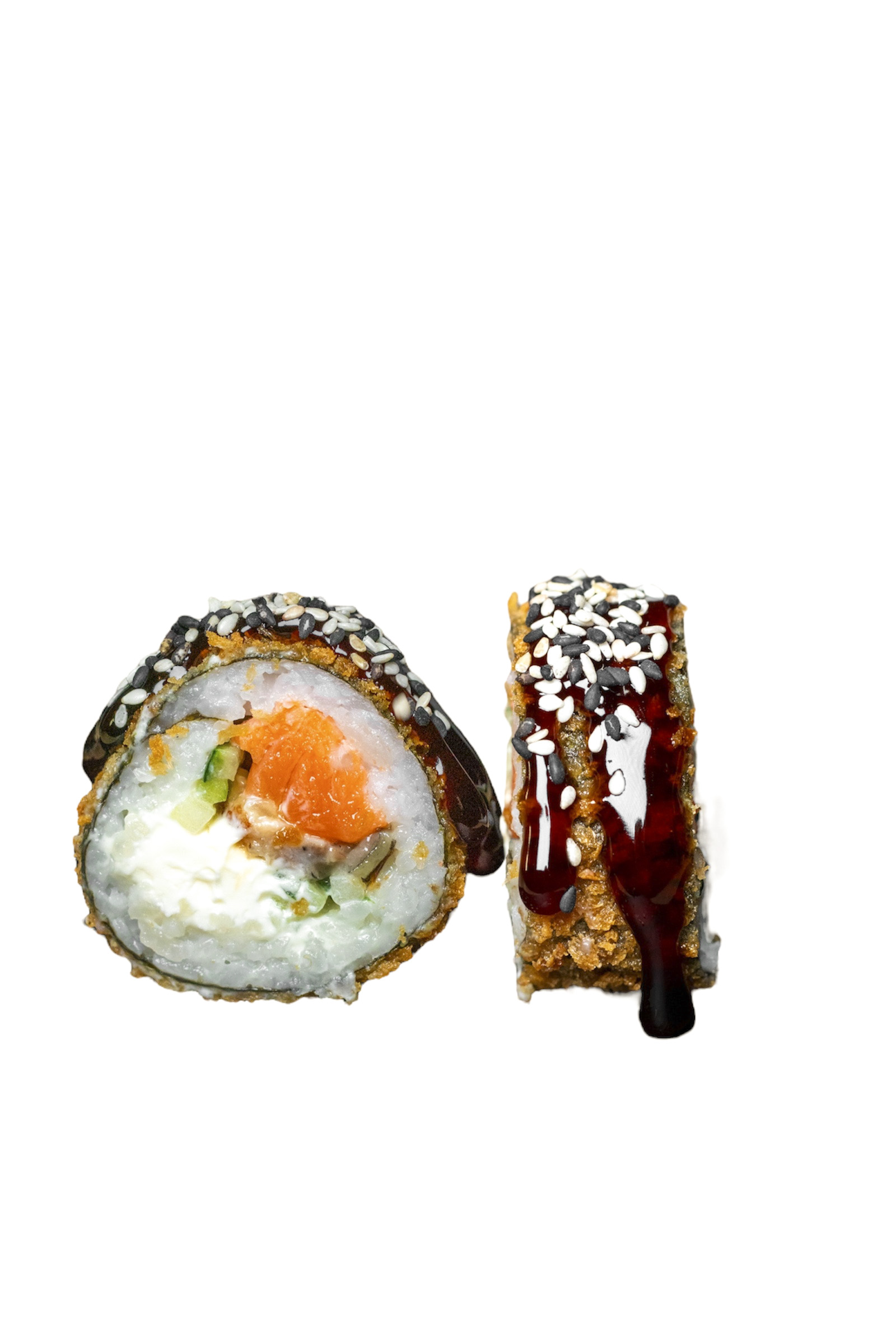 Рис, норі, сир філадельфія, лосось, огірок, тобіко, пармезан, фірмовий соус