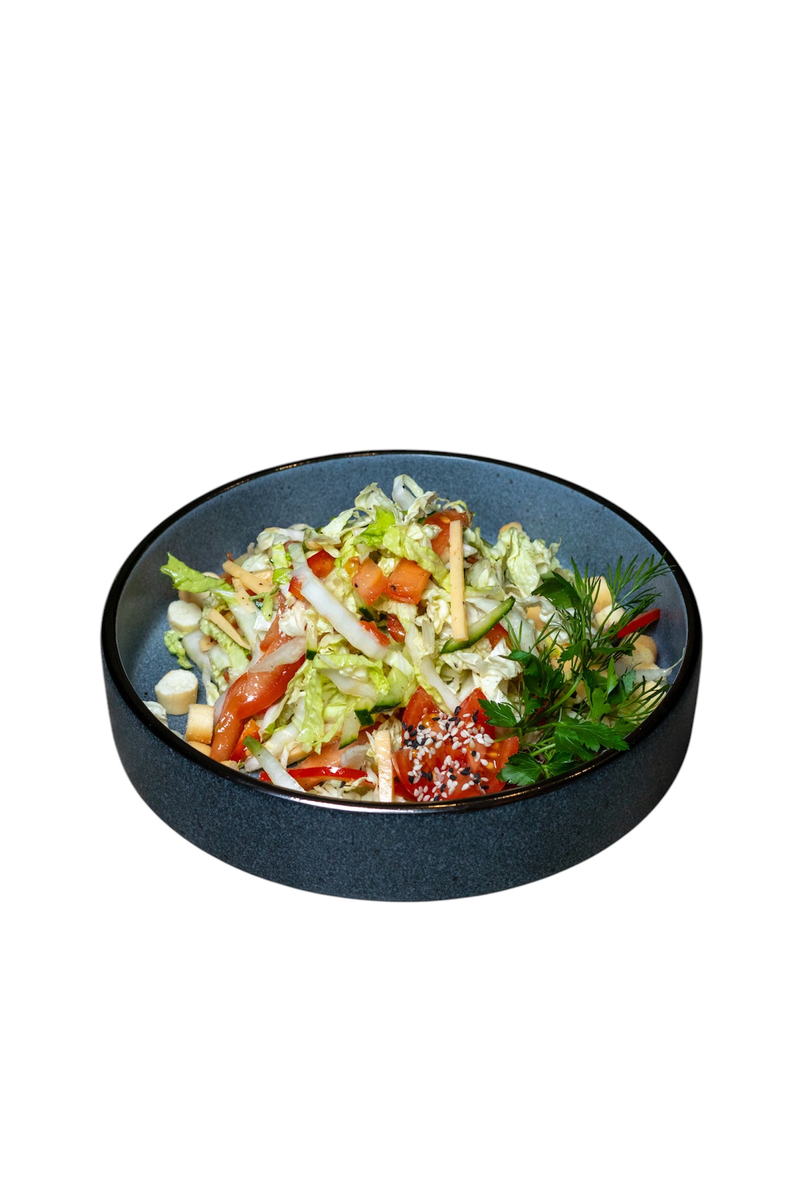 Пекінська капуста, огірок, помідор, сир твердий, грінка, зелень, перець болгарський